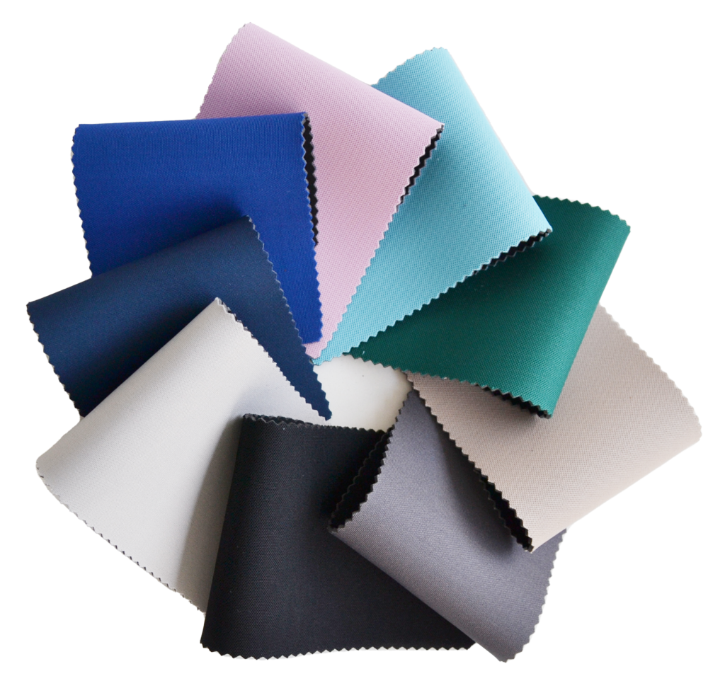Um elastômetro composto de borrracha de policloropeno , dublado com elancas coloridas nas duas faces.